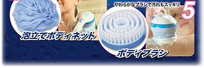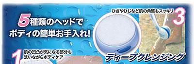 本体、ノーマルブラシ(φ7.5×2.9cm)、ディープクレンジングブラシ(φ7.5×2.6cm)、ボディケアブラシ(φ8.5×2.9cm)、軽石ブラシ(φ7.5×2.9cm)、泡立てボディネット(φ7.5×7cm)、ブラシ収納用専用ポーチ、単三乾電池×3(付属)